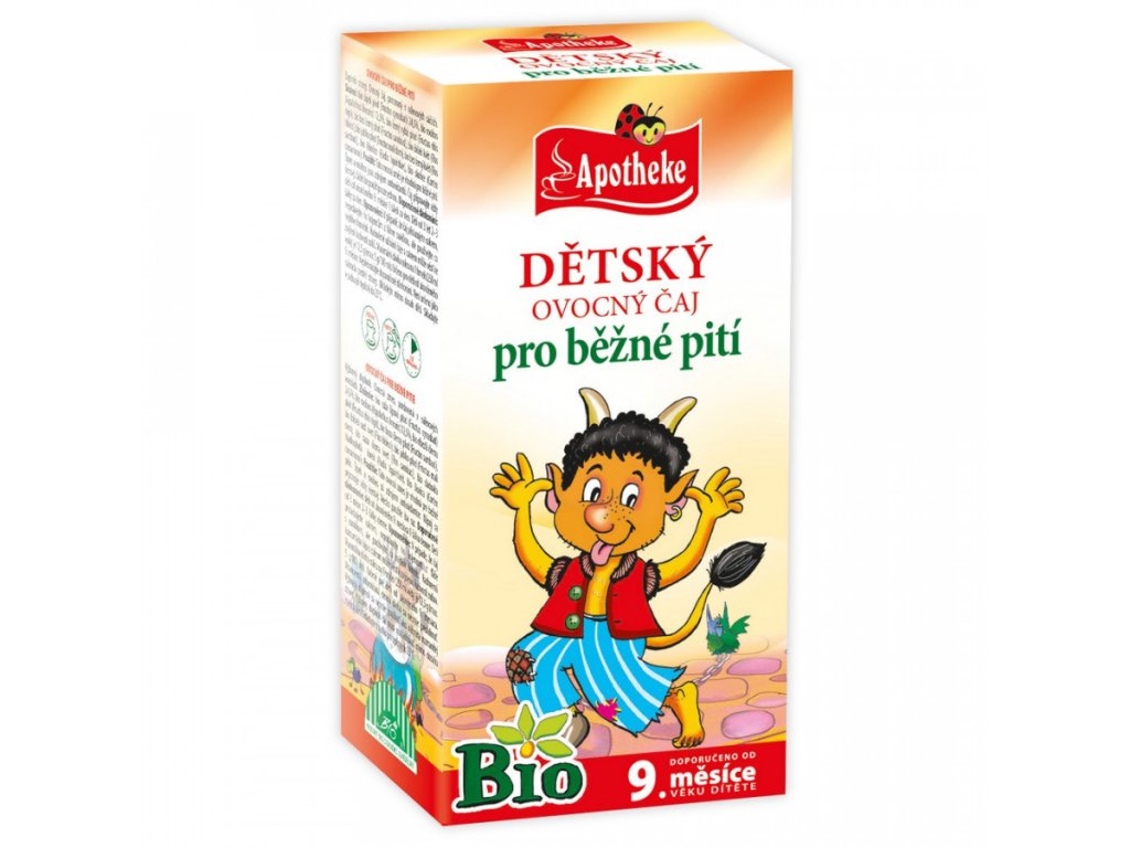 Použití: Čaj je určený dětem pro doplnění pitného režimu. Šípek a černý rybíz jsou zdrojem antioxidantů. Šípky podporují přirozenou obranyschopnost. Složení čaje bylo schváleno Českou pediatrickou společností, je vhodné pro děti od ukončeného 9. měsíce.Zařazení: Doplněk stravy. Ovocný čaj, porcovaný v nálevových sáčcích. Složení: Bio šípek plod (Fructus cynosbati) 24,5%, bio rooibos (Aspalathus linearis), bio černý rybíz plod (Fructus ribis nigri) 12,5%, bio bez černý plod (Fructus sambuci), bio ibišek květ (Flos hibisci), bio jablko plod (Fructus mali dom), bio bez černý květ (Flos sambuci), bio lékořice (Radix liquiritiae), bio skořice (Cortex cinnamomi). Příprava: 1 nálevový sáček zalijte 250 ml vroucí vody a nechte 10 min vyluhovat. Čaj připravujte vždy čerstvý. Sáček lze použít pouze jednou.Doporučené dávkování: Děti od ukončeného 9. měsíce 1 šálek za den. Děti od 3 let 2 – 3 šálky za den.Upozornění: V případě, že čaj přislazujete cukrem, nepodávejte ho kojencům z láhve savičkou, ale používejte co nejdříve hrneček. Nadměrné užívání čaje s cukrem může vést ke zvýšení kazivosti zubů. Maximální dávka cukru na 1 hrnek (250 ml vody) je 12,5 g (max. 5 g/100 ml). Nepřekračujte doporučené dávkování. Není určeno jako náhrada pestré stravy. Ukládejte mimo dosah dětí. Skladování: Skladujte v suchu při teplotě do 25˚C.Hmotnost netto: 40 gVýrobce: MEDIATE, s.r.o., Dolní Libchavy 325, 561 16 Libchavy, ČR .