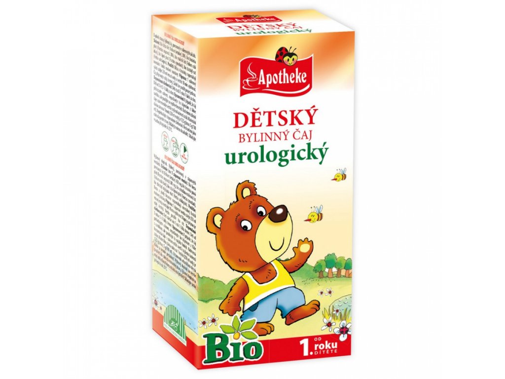Použití: Bříza, brusinky, šípky a zlatobýl napomáhají normální funkci močové soustavy. Složení čaje bylo schváleno Českou pediatrickou společností, je vhodné pro děti od ukončeného 1. roku.Zařazení: Doplněk stravy. Bylinný čaj, porcovaný v nálevových sáčcích. Složení: Bio bříza list (Folium betulae) 30%, bio brusinka plod (Fructus oxycocci) 20%, bio maliník list (Folium rubi idaei ), bio šípek plod (Fructus cynosbati) 15%, bio zlatobýl nať (Herba virgaureae) 15%. Příprava: 1 nálevový sáček zalijte 250 ml vroucí vody a nechte 10 min vyluhovat. Čaj připravujte vždy čerstvý. Sáček lze použít pouze jednou.Doporučené dávkování: Děti starší jednoho roku 1 šálek za den. Děti od 3 let 2 – 3 šálky za den.Upozornění: V případě, že čaj přislazujete cukrem, nepodávejte ho kojencům z láhve savičkou, ale používejte co nejdříve hrneček. Nadměrné užívání čaje s cukrem může vést ke zvýšení kazivosti zubů. Maximální dávka cukru na 1 hrnek (250 ml vody) je 12,5 g (max. 5 g/100 ml). Nepřekračujte doporučené dávkování. Není určeno jako náhrada pestré stravy. Ukládejte mimo dosah dětí. Skladování: Skladujte v suchu při teplotě do 25˚C.Hmotnost netto: 30 gVýrobce: MEDIATE, s.r.o., Dolní Libchavy 325, 561 16 Libchavy, ČR .