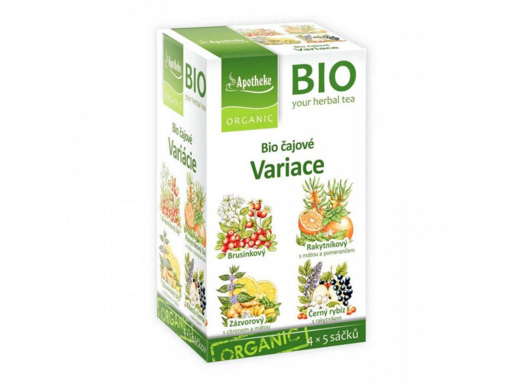 V krabičce najdete čtyři různé druhy lahodných ovocných čajů v BIO kvalitě. Pijte horké pro zahřátí, nebo vychlazené pro osvěžení.Zařazení: Směs ovocných a bylinných aromatizovaných čajů, porcovaných v nálevových sáčcích.Složení: ZÁZVOROVÝ ČAJ S CITRONEM A MÁTOU: Bio máta nať 35%, bio jablko plod, bio zázvor kořen 20%, přírodní citronové aroma, kyselina citronová, bio citronová kůra 3 %, bio lékořice kořen. RAKYTNÍKOVÝ ČAJ S MÁTOU A POMERANČEM: Bio šípek plod (Fructus cynosbati) 36 %, bio rakytník plod (Fructus hippophae) 25 %, bio máta nať (Herba menthae piperitae) 20 %, pomerančové přírodní aroma, bio ibišek květ (Flos hibisci), bio pomerančové oplodí 5 %.BRUSINKOVÝ OVOCNÝ ČAJ: Bio šípek plod 31 %, bio brusinka plod 20 %, bio ostružina list, bio rakytník plod 10 %, bio černý rybíz plod, bio máta nať, bio pomerančová kůra. ČERNÝ RYBÍZ S RAKYTNÍKEM: Bio černý rybíz plod 30 %, bio černý rybíz list 25 %, bio jablko plod 24 %, bio rakytník plod 11 %, bio máta nať, bio lékořice kořen 3 %. Příprava: 1 nálevový sáček zalijte 250 ml vroucí vody a nechte 10-15 min vyluhovat.Doporučené dávkování: 2 až 3 šálky za den. Skladování: Skladujte v suchu při teplotě do 25˚C.Hmotnost netto: 33 gVýrobce: MEDIATE, s.r.o., Dolní Libchavy 325, 561 16 Libchavy, ČR .