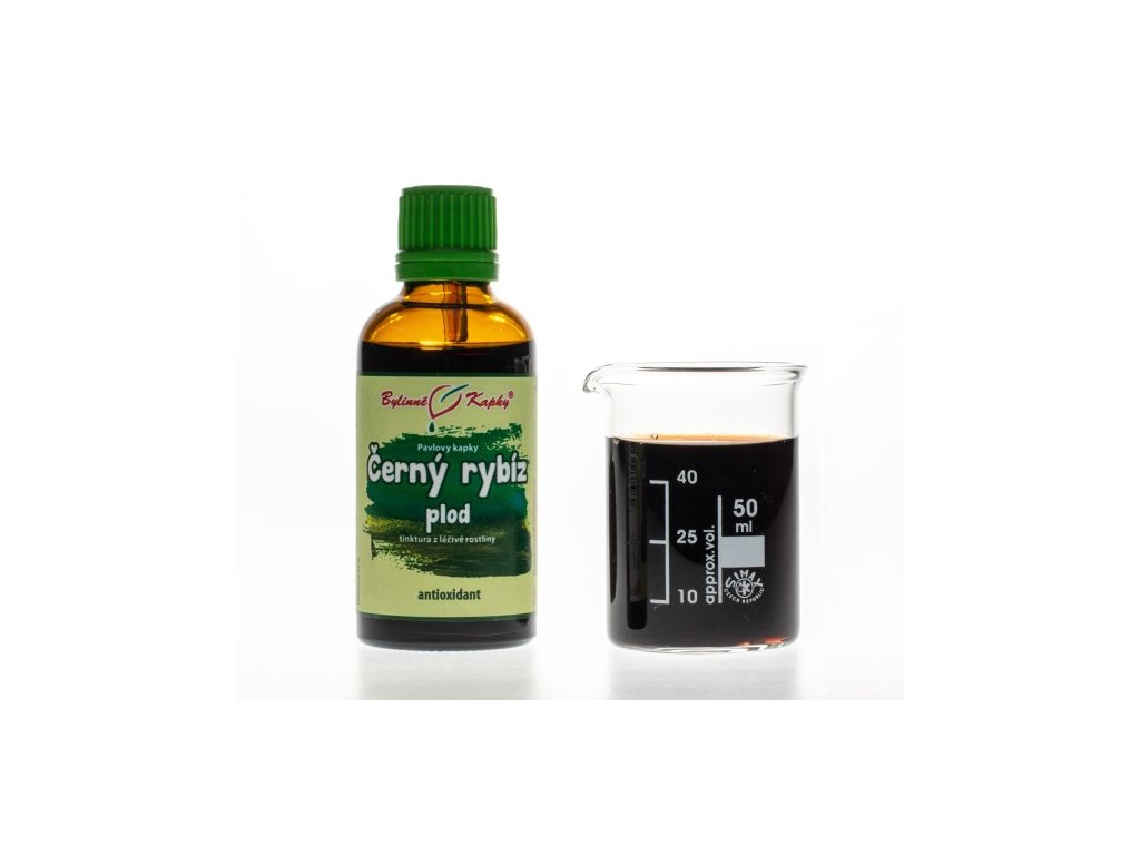 Černý rybíz plod (bylinná tinktura - Pavlovy bylinné kapky). Přírodní bylinný extrakt z plodů léčivé rostliny rybízu černého s antioxidačními účinky a proti únavě.