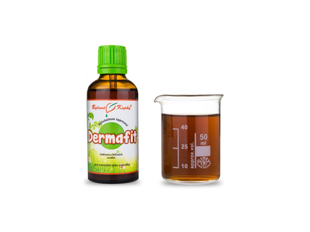 Dermafit (bylinná tinktura - bylinné kapky z řady Bylinkářovo tajemství). Přírodní bylinný extrakt pro normální stav pokožky.