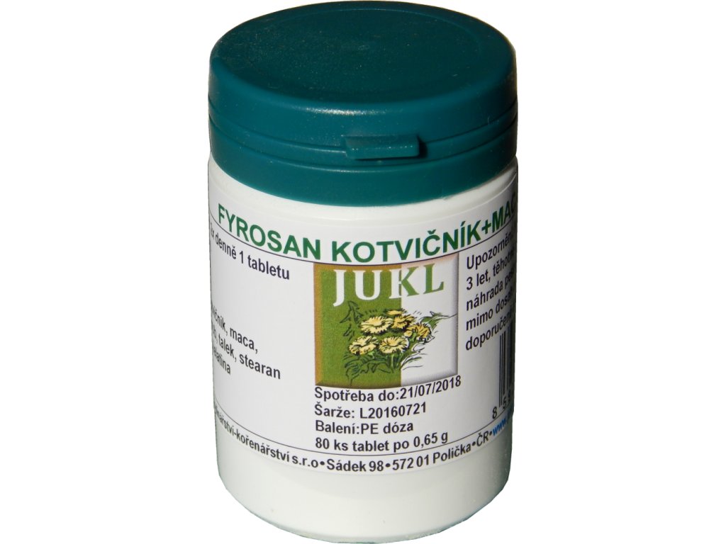 Složení: kotvičník, maca, laktóza, škrob, talek, stearan hořečnatý, želatina
