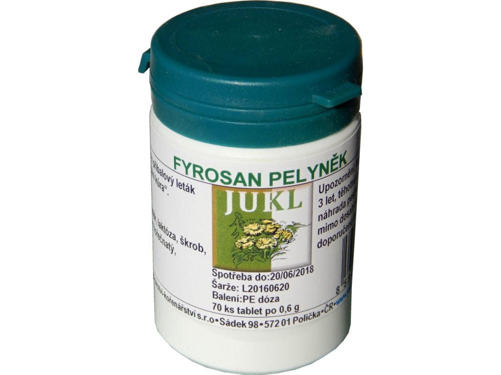 Složení: pelyněk, laktóza, škrob, talek, stearan hořečnatý, želatina
