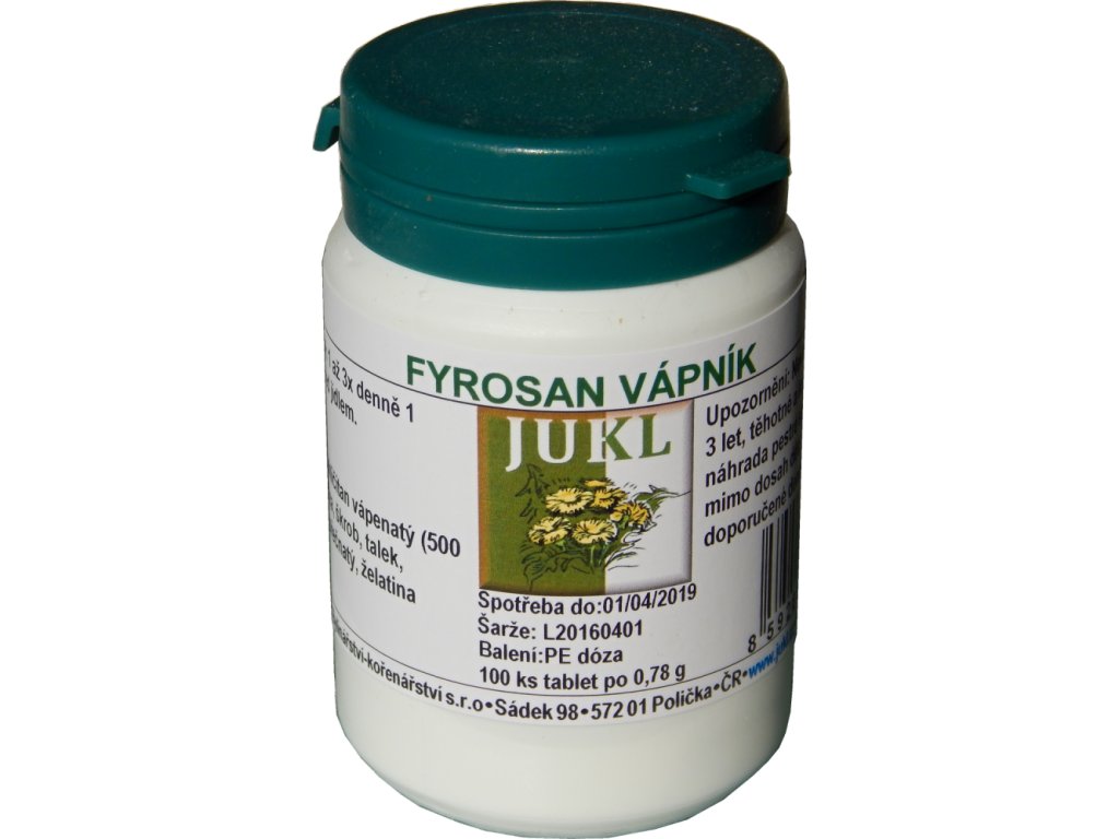 Složení: uhličitan vápenatý (500 mg), laktóza, škrob, talek, stearan hořečnatý, želatina