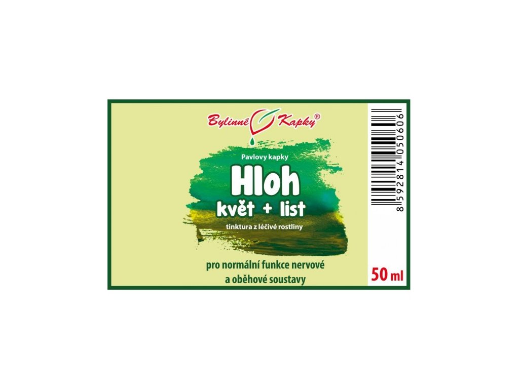 Hloh list a květ (bylinná tinktura - Pavlovy bylinné kapky). Přírodní bylinný extrakt z listu a květu léčivé rostliny hlohu obecného pro normální funkce nervové a oběhové soustavy.