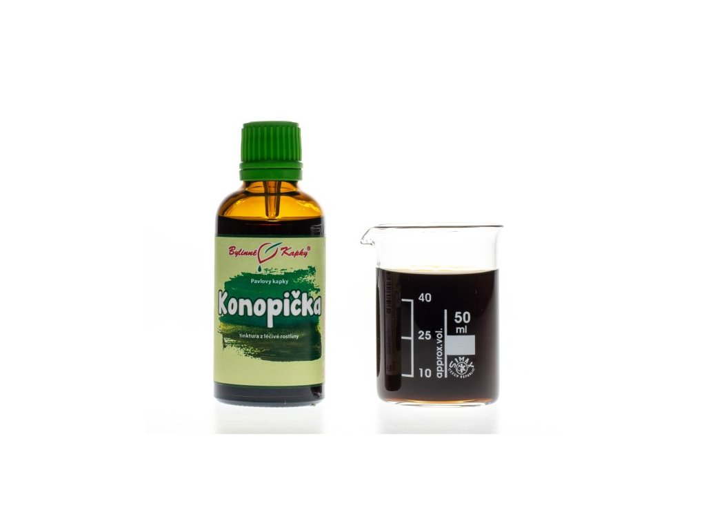 Konopička (bylinná tinktura - Pavlovy bylinné kapky). Přírodní bylinný extrakt z natě léčivé rostliny konopičky bledožluté. Pro vnější užití.