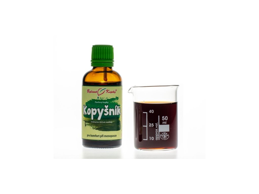 Kopyšník (bylinná tinktura - Pavlovy bylinné kapky). Přírodní bylinný extrakt z kořene léčivé rostliny kopyšníku tmavého pro komfort při menopauze.