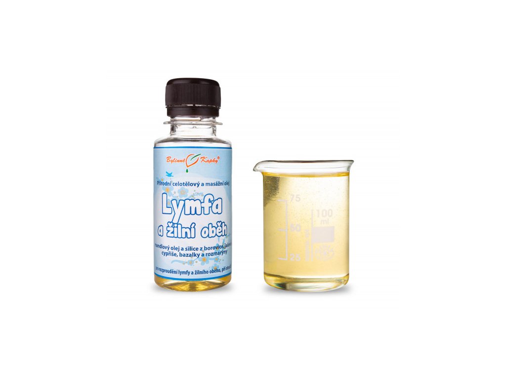 Lymfa a žilní oběh (otoky). Vonný masážní olej celotělový. Obsahuje účinnou složku z léčivých rostlin.