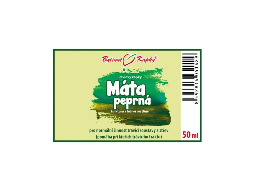 Máta peprná (bylinná tinktura - Pavlovy bylinné kapky). Přírodní bylinný extrakt z natě léčivé rostliny máty peprné pro normální činnost trávicí soustavy a střev a proti nadýmání.