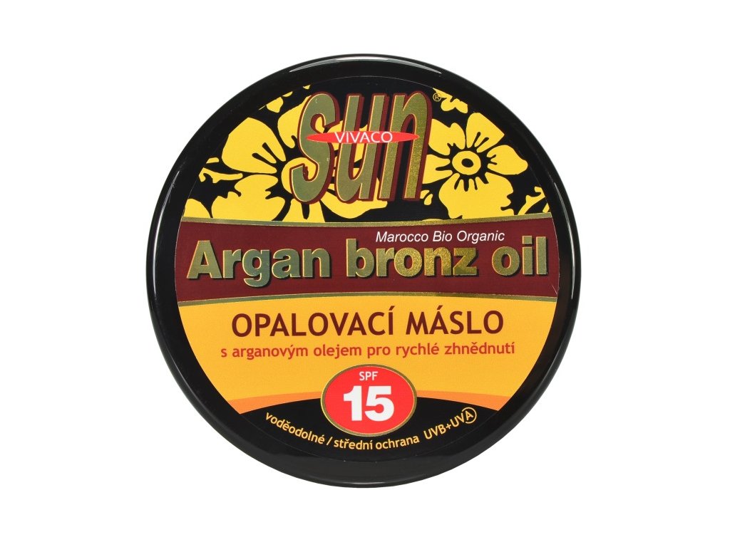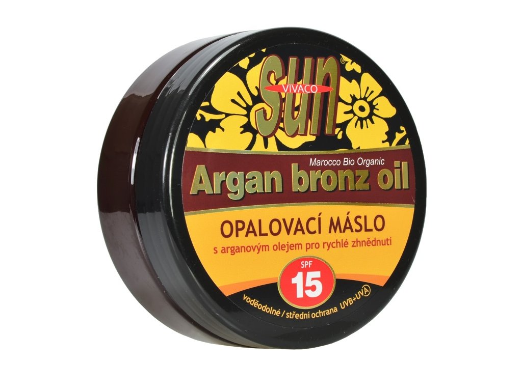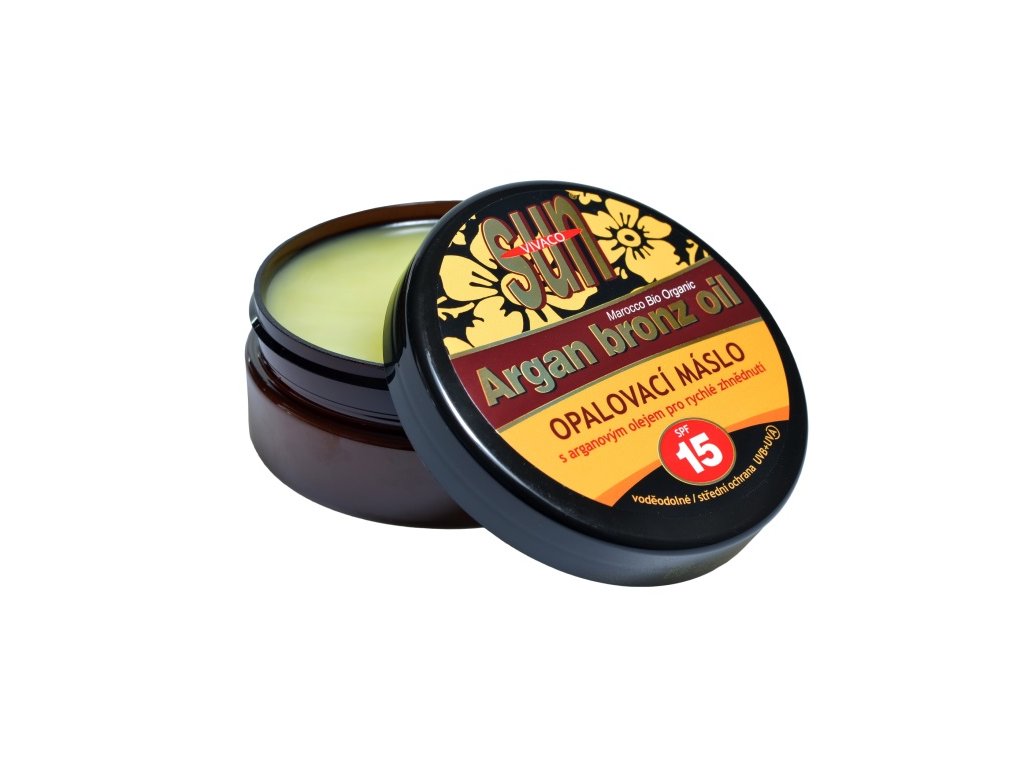 Opalovací máslo s bio arganovým olejem, beta karotenem a vitaminem E pro intenzivní, rychlé a dlouhotrvající opálení.