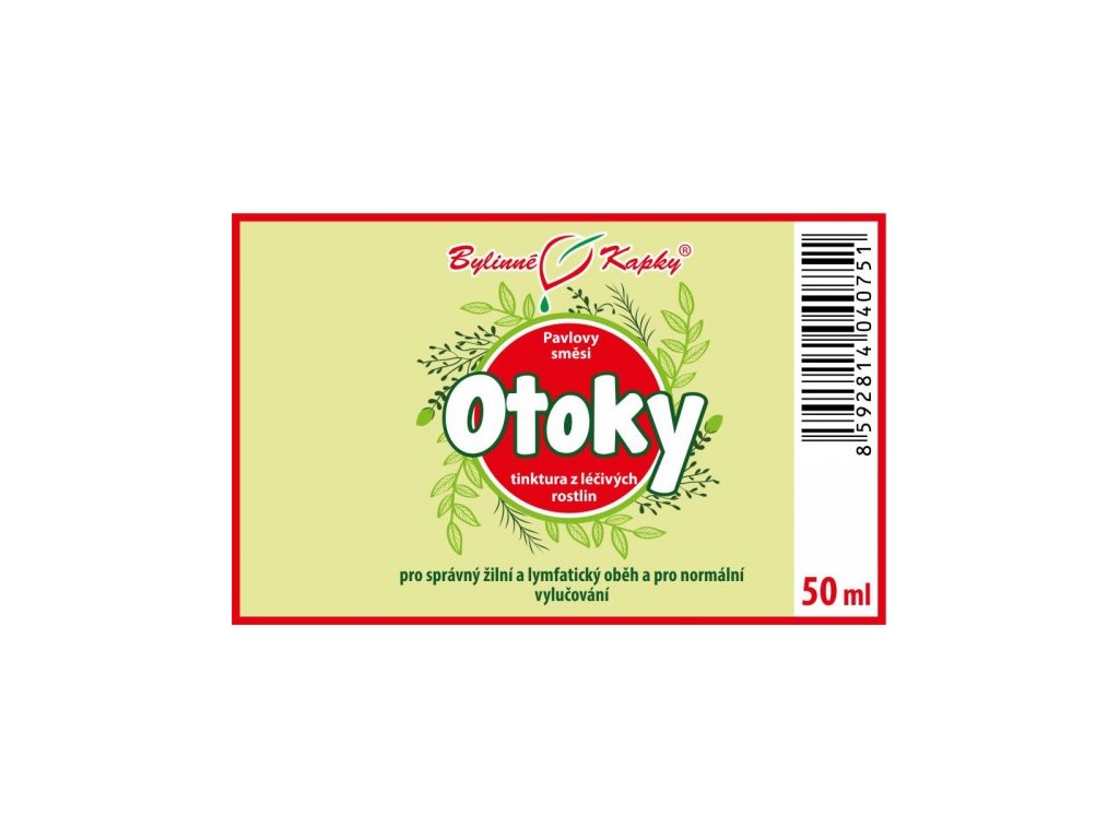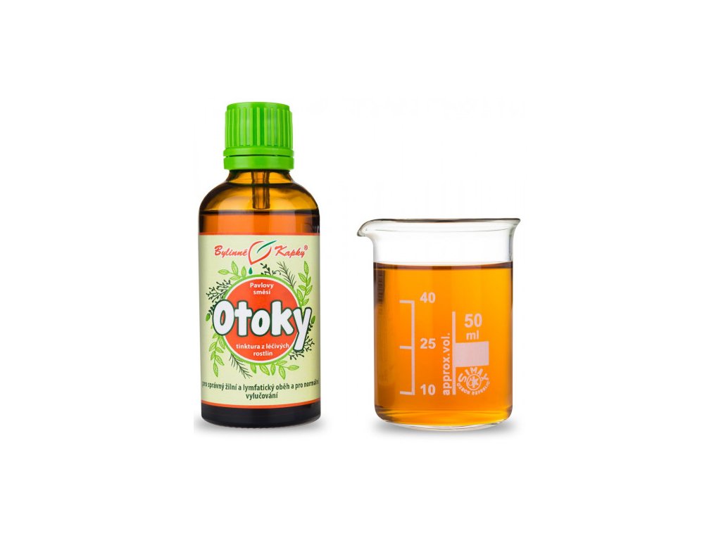 Otoky I (bylinná tinktura - Pavlovy bylinné kapky). Přírodní bylinný extrakt z léčivých rostlin pro správné vylučování tekutin z těla. Slouží ke zmenšení otoků končetin.