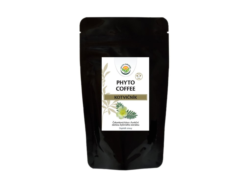 Phyto Coffee je směs rozpustné čekanky a funkční dávky standardizovaného extraktu kotvičníku. Připravený nápoj je chutnou bezkofeinovou alternativou kávy obohacenou o účinky kotvičníku.