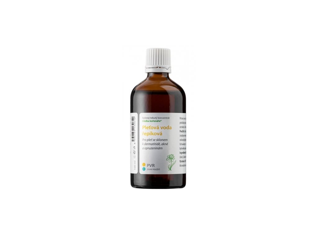 Pleťová voda řepíková šetrně uvolňuje a odstraňuje nečistoty. Je vyrobena z bylin, jejichž zklidňující účinek na pokožku je znám již po generace. Obsahuje líh, jehož vysušující účinek je vyvážen hydratačními vlastnostmi bylinného extraktu. Líh také přispívá k čistotě a hygieně pleti.