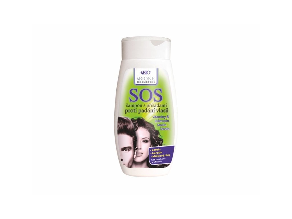 Vlasový šampon SOS se používá jako podpůrný a doprovodný šampon k mytí vlasů při používání „Záchranného spreje“ SOS pro muže i ženy. Šampon obsahuje řadu moderních i tradičních osvědčených přísad používaných pro podporu růstu vlasů a pro omezení jejich vypadávání. Je doplněn o bílkovinný hydrolyzát keratinu pro přímou regeneraci již odrostlých vlasů. Používáním šamponu SOS vlivem keratinu dochází k doplnění vlasové struktury narušené slunečním zářením, barvením, trvalou ondulací, fénováním, odbarvováním a stárnutím. Vlasy se zpevní, vrátí se jejich pružnost a lesk, netřepí se. Šampon je doplněn o regenerační panthenol a o kondicionační rostlinný lecithin. Regenerace a výživa Vašich vlasů je podpořena kličkovým olejem s vitamíny B1, B2, B6 aj. Mezi nejznámější přítomné podpůrné a regenerační přísady patří arginin, kofein, biotin, niacin, tyrosin, fruktóza, adenosin a inositol.