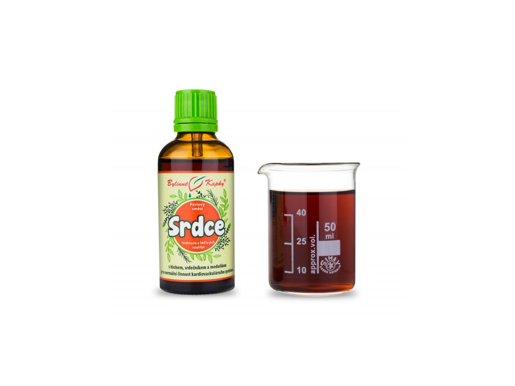 Srdce (bylinná tinktura - Pavlovy bylinné kapky). Přírodní bylinný extrakt z léčivých rostlin pro normální činnost kardiovaskulárního systému.