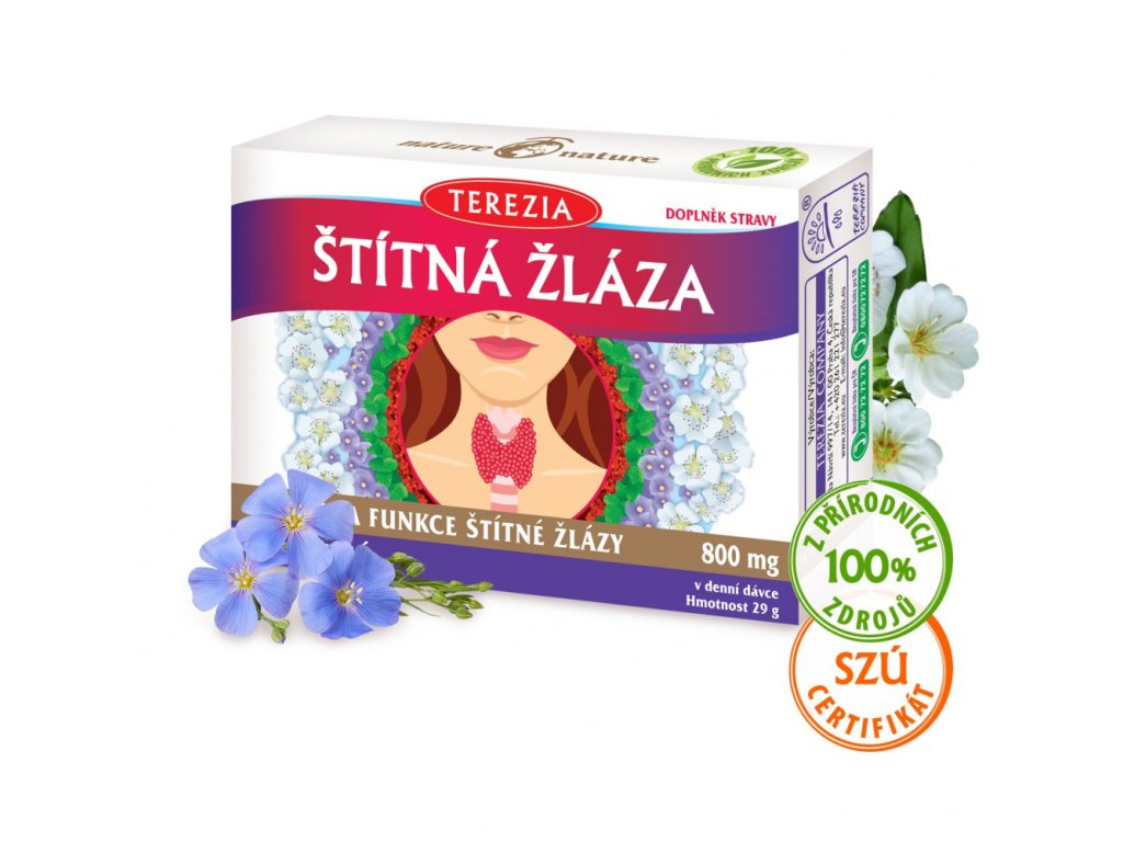 1 kapsle obsahuje 400 mg směsi Štítná žláza [sušený prášek kořene mochny bílé (Potentilla alba), sušené mořské řasy Laminaria (Laminaria digitata) 80 mg, prášek a extrakt listu meduňky lékařské (Melissa officinalis) 80 mg, prášek plodu lnu setého (Linum usitatissimum), sušený extrakt chaluhy bublinaté (Fucus vesiculosus), extrakt kvetoucí nati řepeně durkoman (Xanthium strumarium), sušený extrakt zeleného ovsa setého (Avena sativa)].
