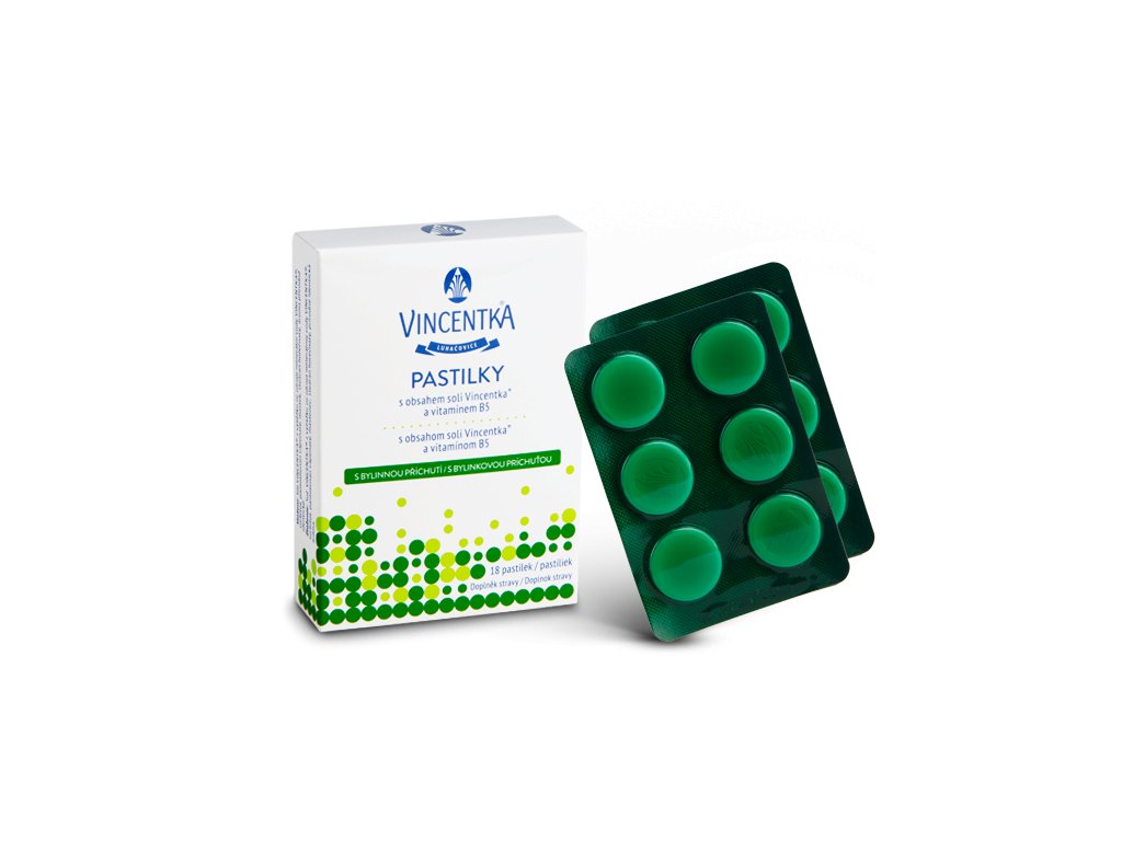 Vincentka pastilky s bylinnou příchutí je doplňkem stravy. Určeno pro péči o sliznici dutiny ústní a nosohltanu. Produkt z minerální vody Vincentka z přírodního léčivého zdroje.