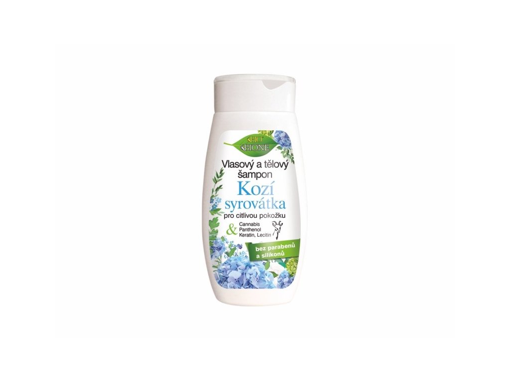 Vlasový a tělový šampon pro citlivou pokožku. Obsahuje tradiční osvědčené aktivní složky v moderním spojení s dalšími účinnými látkami. Osvědčený základ šamponů Bione s přídavkem kozí syrovátky a extraktu Cannabis je doplněn o oblíbený lecithin a panthenol, pro posílení růstu vlasů obsahuje populární kofein. Účinnou složkou šamponu pro zregenerování již vyrostlých vlasů je hydrolyzát keratinu. Kozí syrovátka obsahuje imunoglobuliny, laktoferin, laktoperoxidázu, aminokyseliny, kompletní řadu vitamínů B, vitamín H, bio minerály jako vápník, draslík, železo, jód, měď, kobalt, zinek, dále laktózu, organické a mastné kyseliny, kasein a řadu dalších složek. Jemný a vydatný prostředek každodenní hygieny pro všechny typy vlasů a pokožky celého těla. Dosahuje vysoké pěnivosti a mohutné čisticí a mycí síly, bez extrémního odmaštění pokožky i vlasů. Vyrobeno v BIO formulaci, bez SLS, SLES, bez silikonů a bez parabenů. Bez phenoxyethanolu! Ochrana, výživa, regenerace – přírodní silou. Šetrný k Vám i k přírodě. S výhradně bez alergenní parfemací. Šampon Bione = koncentrát. Vydrží mnohem déle. Chraňte oči před vniknutím šamponu. Fyziologické pH.